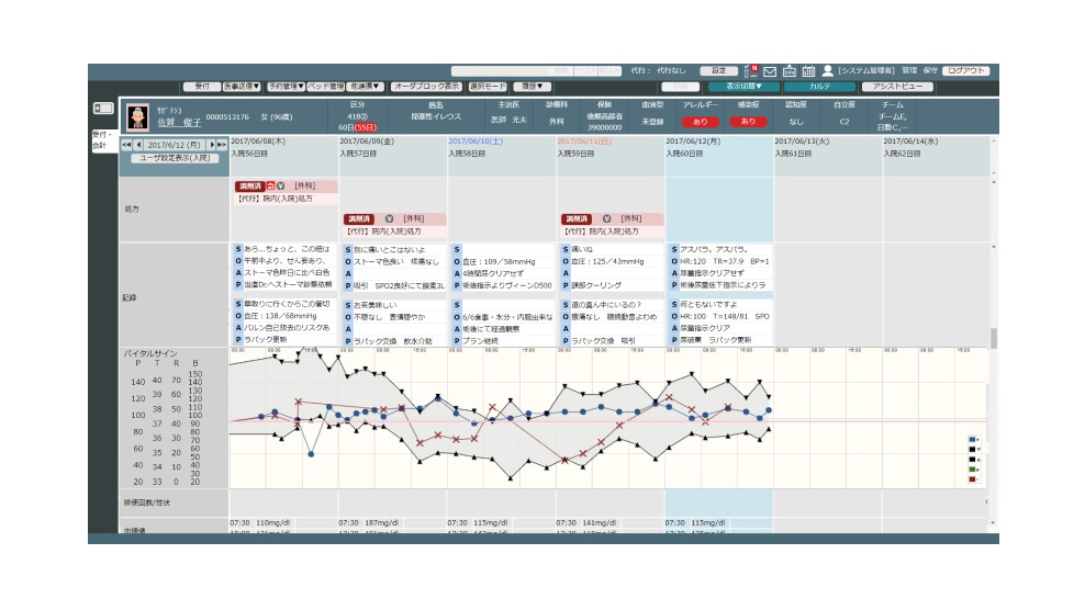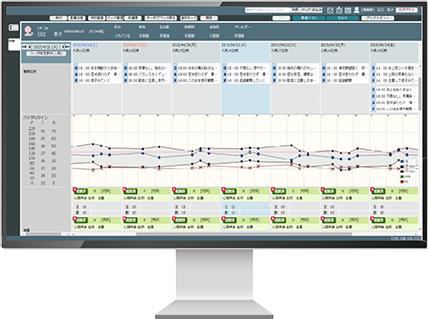 クリニカルパスをイメージしたカレンダー画面により、患者さんの治療経過や計画を時系列に俯瞰することができます。スタッフ間で診療情報をトータルに管理・共有できるため、チーム医療の推進や質の向上に貢献できます。