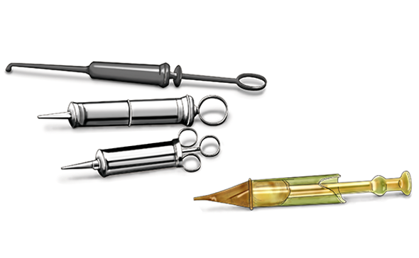 現在の注射器の原型を考案したのは、フランス・リヨンの外科医シャルル・ガブリエル・プラヴァーズだといわれている。それまでの浣腸器を改良して、先端に中空の針をつけた注射器を発明したのは1851年(嘉永4)のこと。<br> しかし、この注射器は、内筒に刻まれたネジ山に沿ってハンドルを回しながら薬液を注入するというシロモノだった。片手で操作することができないため、どうしても注入が不安定にならざるを得ず、残念ながら実用性には乏しかったという。<br> その2年後にプラヴァーズの注射器の欠点を克服して現在の注射器に近いピストン式の注射器を開発したのが、イギリス・エディンバラの開業医アレクサンダー・ウッドである。彼がモルヒネを皮下注射して、世界で初めての局部麻酔に成功したのは1853年(嘉永6)のことで、ちょうど日本ではペリーが来航した年だった。