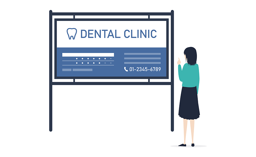 看板はいろいろな角度や距離から見られる可能性があるため、最低限の情報は大きく太い文字で表示。診療時間などの細かい情報は少し文字を小さくして記載するなど、看板の中に入れる情報にメリハリをつけるのがおすすめです。