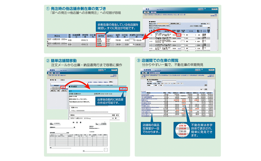 保険薬局様の現状は、ジェネリック医薬品の品揃えの強化により在庫量が上昇する傾向にあります。経営する立場では、多品種少量在庫を実現しないと在庫金額が増加し、資金が減少してしまう状況です。よって、同一チェーン内で在庫を融通するシステム作りが不可欠となります。