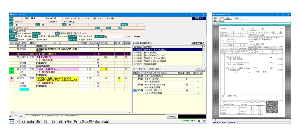 処方箋をスキャナで読み込むだけで、画像データを窓口入力と並べて表示。コピーの手間や経費を削減するとともに調剤業務の効率化を図ります。
