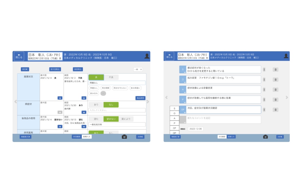 在宅・施設訪問時の薬歴管理、服薬指導に活用できます。