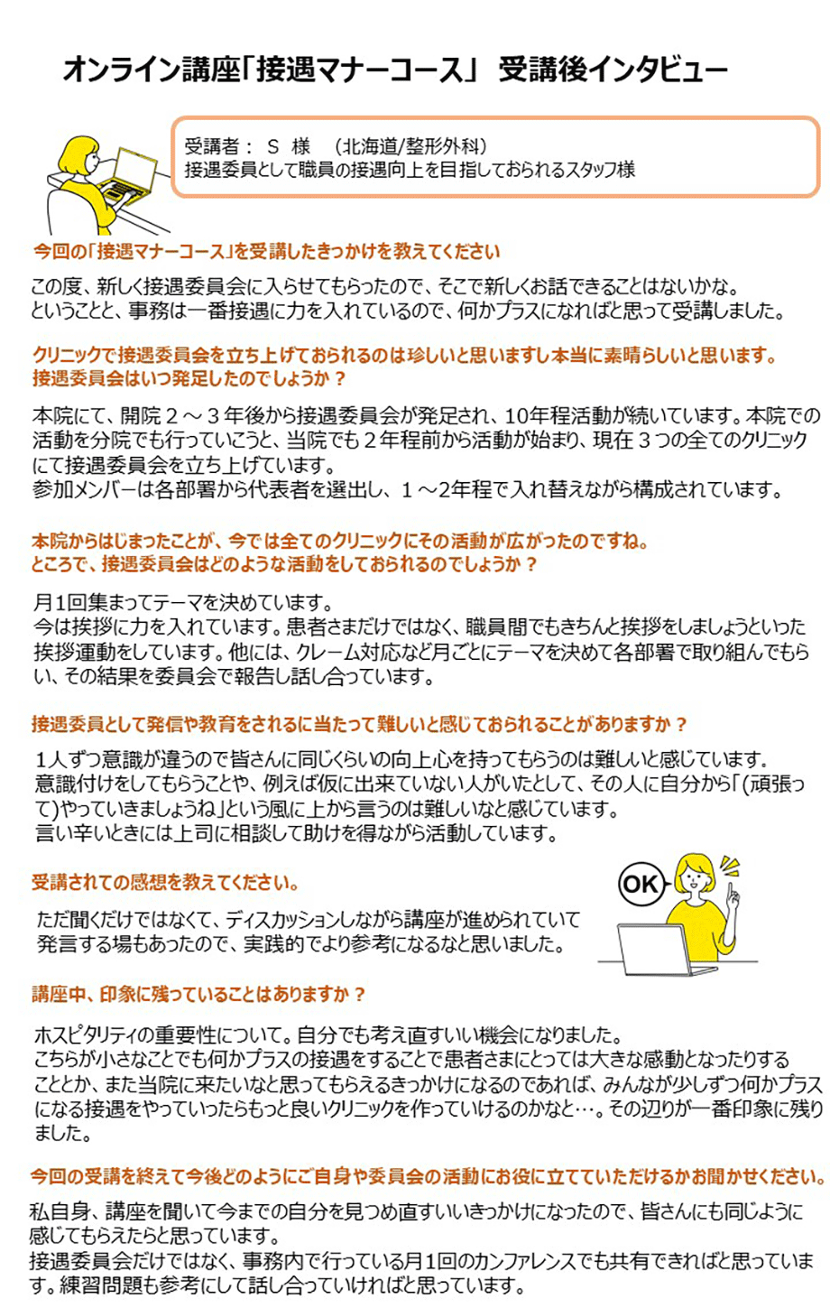 当院は整形外科ですが、診療科に特化した内容で講座をしていただけるのでしょうか。